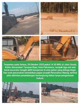 Dekat Perumahan Dan Polsek Tenayan Raya, 3 Excavator Galian C Ilegal Di Kulim Tenaya Raya Terus Beraksi Tanpa Takut Hukum