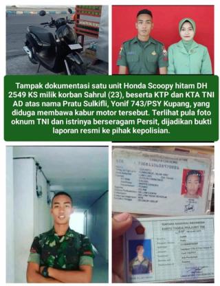 OKNUM TNI AD DIDUGA GELAPKAN MOTOR WARGA KUPANG: KORBAN AKAN LAPORKAN KE POLISI