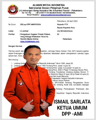 Didampingi Penasehat Hukum Jaka Marhaen,SH, DPP AMI Resmi Laporkan Teva Iris ke Mapolda Riau