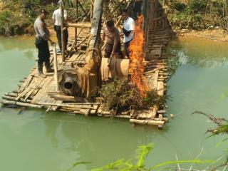 Respon Cepat Polsek Kuantan Hilir Musnahkan Tiga Unit Rakit PETI Di Desa Kasang Limau Sundai Kecamatan Kuantan Hilir Seberang