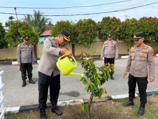 Kapolres Kampar Tanam Pohon Kenitu dari Kapolda Riau di Halaman Mapolres, Dukungan Pelestarian Lingkungan