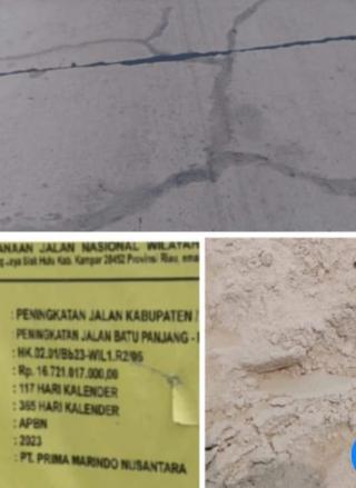 Diduga Korupsi Berjamaah, Proyek Jalan Batu Panjang Pangkalan Nyirih Baru Selesai Dikerjakan Sudah Retak