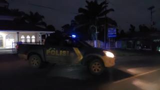 Guna menekan pelanggaran dan angka kecelakaan di Jalan Lintas Timur, anggota Polsek Kemuning Polres Inhil melaksanakan kegiatan patroli Blue Light sub