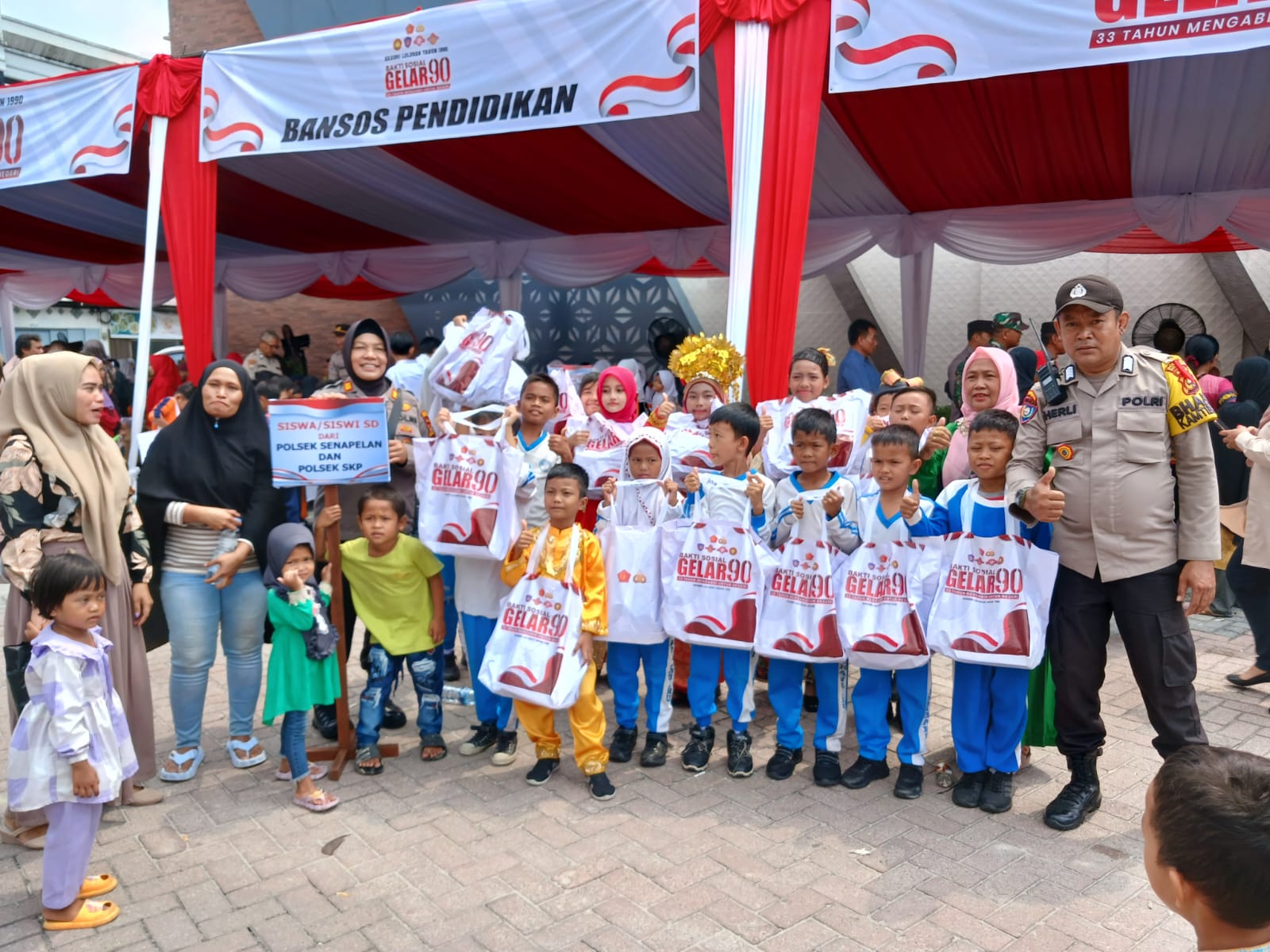 Puluhan Warga yang ikut baksos Akabri 90 berkumpul di Polsek Senapelan. Warga yang sebagian besar berdomisili di Kecamatan Senapelan, Pekanbaru ini mengikuti sejumlah kegiatan yang ditaja Polda Riau tersebut diantaranya, pemeriksaan kesehatan gratis, pemberian bansos pendidikan serta bansos lainnya.