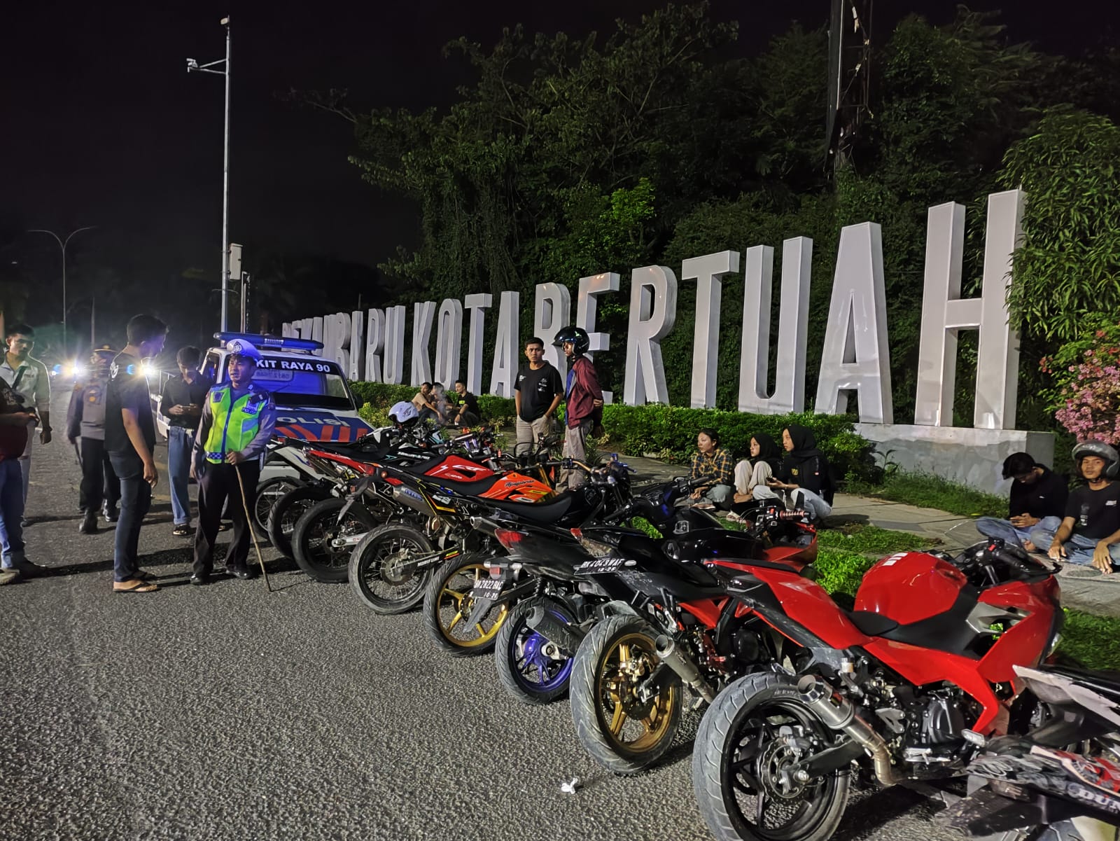 "Dalam kegiatan razia balap liar dan kenalpot brong yang dilaksanakan hingga hari Minggu 19 November 2023 Pukul 04.20 Wib berhasil diamankan 24 ( dua puluh empat  ) unit sepeda motor berbagai merk yang diduga digunakan untuk aksi balap liar. Selain mengamankan kendaraan yang memakai knalpot brong/ tidak standar dan kendaraan yang tidak dilengkapi surat-surat, Polsek Bukit Raya juga mengamankan pengendara untuk dimintai keterangan," urai Kapolsek.