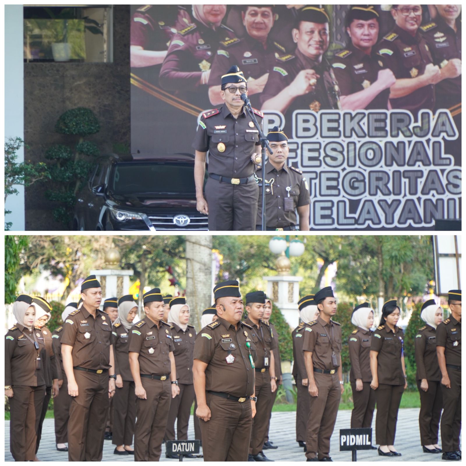Upacara diikuti oleh Wakil Kepala Kejaksaan Tinggi Riau Hendrizal Husin,SH.,MH,Para Asisten,Para Koordinator,Para Kasi dan Jaksa Fungsional beserta seluruh Pegawai pada Kejaksaan Tinggi Riau.