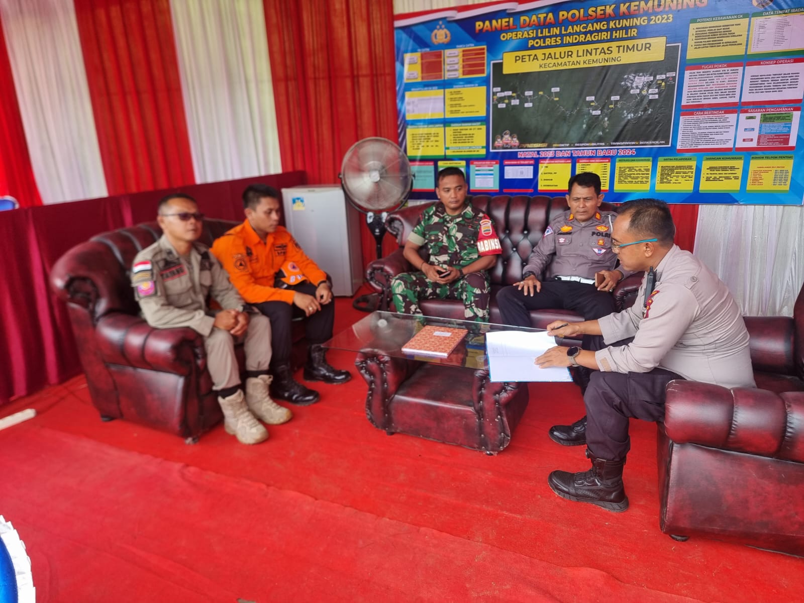 Dari instansi terkait terlihat personil Polsek Kemuning, Koramil Kemuning, BPBD, Dishub dan Satpol PP kecamatan kemuning juga satandby, Kapolsek menekankan agar masing2 personil melaksanakan tugas dengan baik dan penuh rasa tanggungjawab dalam melaksanakan Pengamanan NATARU 2023, ini adalah tugas kemanusiaan untuk membantu saudara-saudara kita yang akan mudik Natalan, pengalaman pada Pam lebaran 2023 lalu banyak pemudik yang singgah untuk bertanya tentang arah jalan ataupun sekedar istirahat kecapekan diperjalanan. Pastikan agt POS PAM selalu standby dan kondisi kebersihan serta kerapian POS selalu terjaga, imbuh Kapolsek