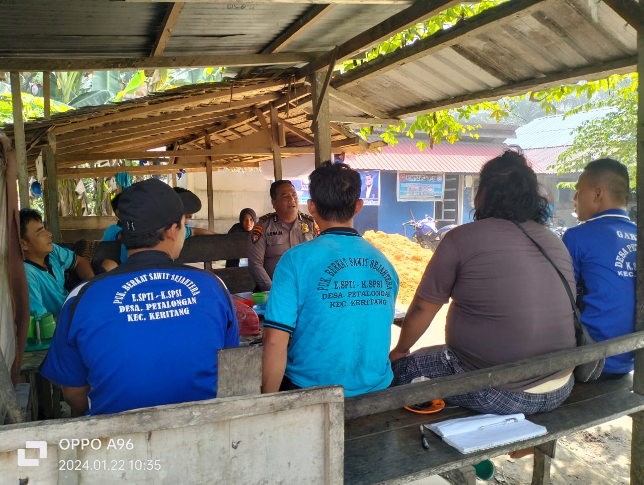 Kasubsektor Sencalang Polsek Keritang Polres Indragiri Hilir, Polda Riau terus menjalin Komunikasi dengan Masyarakat dan memberikan Pesan-pesan Kamtibmas dalam upaya menciptakan situasi yang kondusif melalui kegiatan sambang, Selasa 23/01/2024 di Desa Petalongan Kecamatan Keritang.