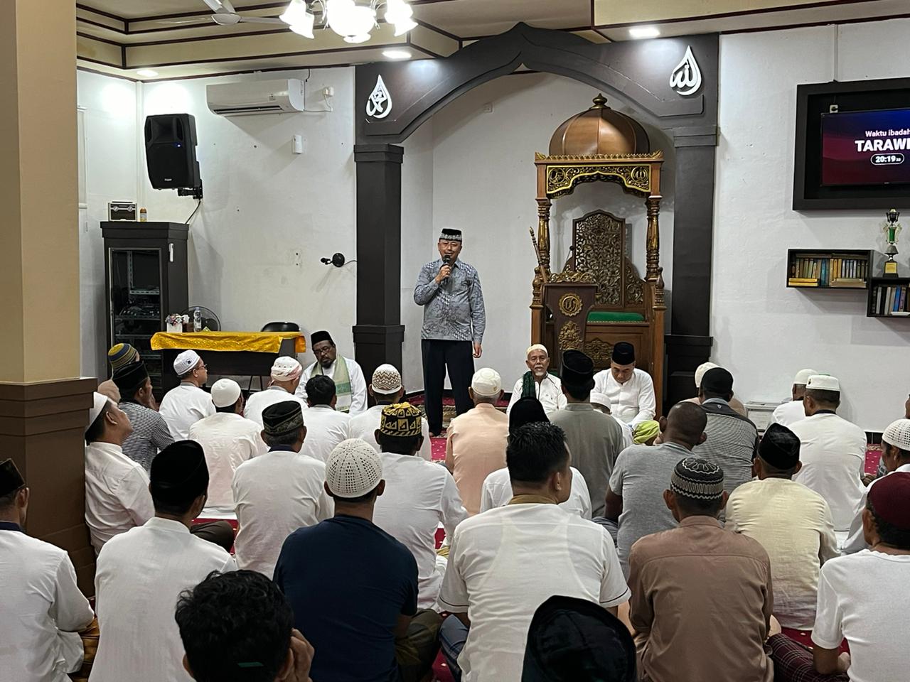 Kepala Lapas Pasir Pengaraian Bahtiar Sitepu turut memberikan sambutan sebelum dimulai nya pelaksanaan Shalat Tarawih di Masjid At-Taubah Lapas Pasir Pengaraian.