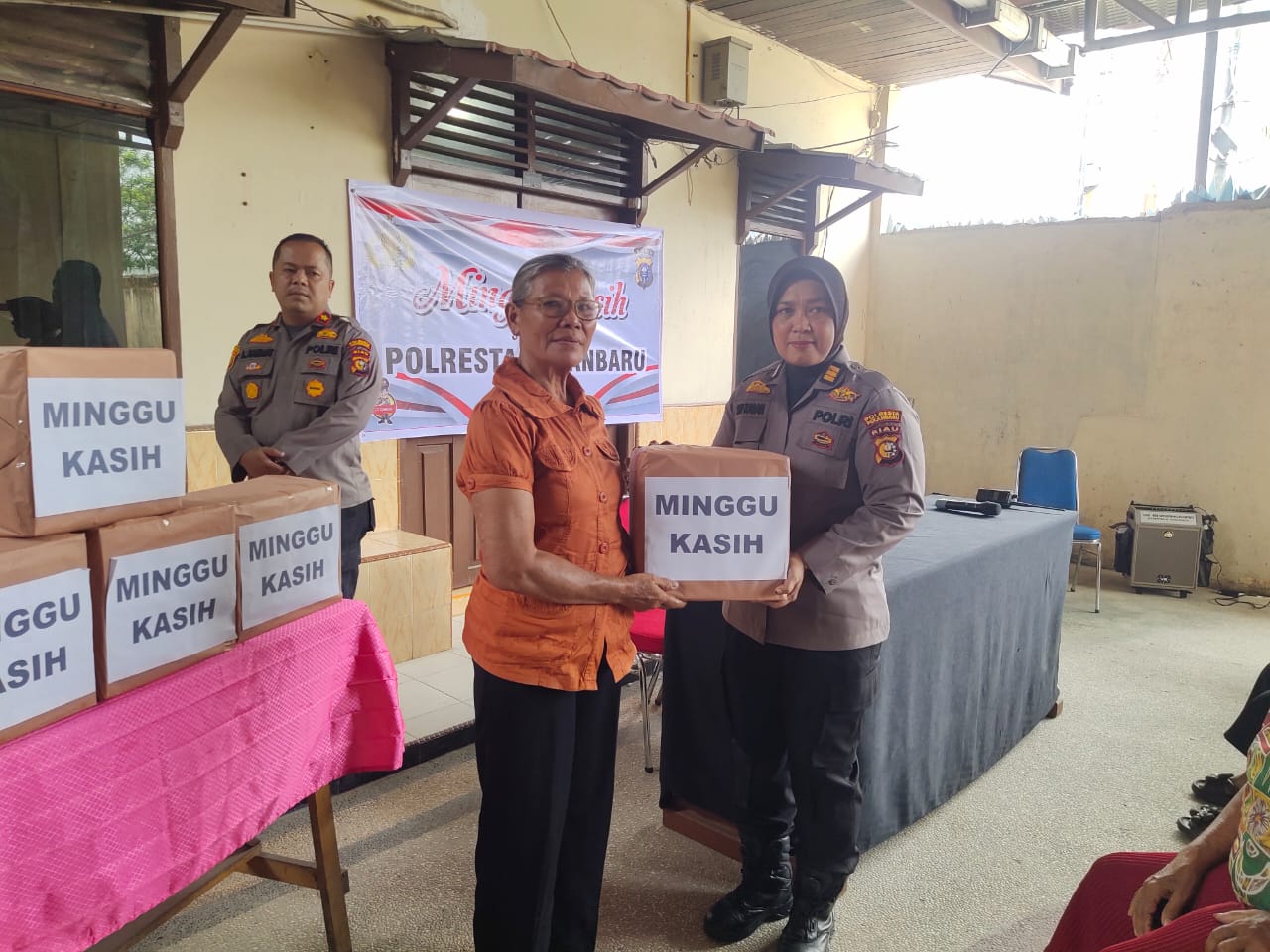 Dalam Kegiatan Minggu kasih Polresta Pekanbaru, Polsek Tampan Memberikan Bingkisan.