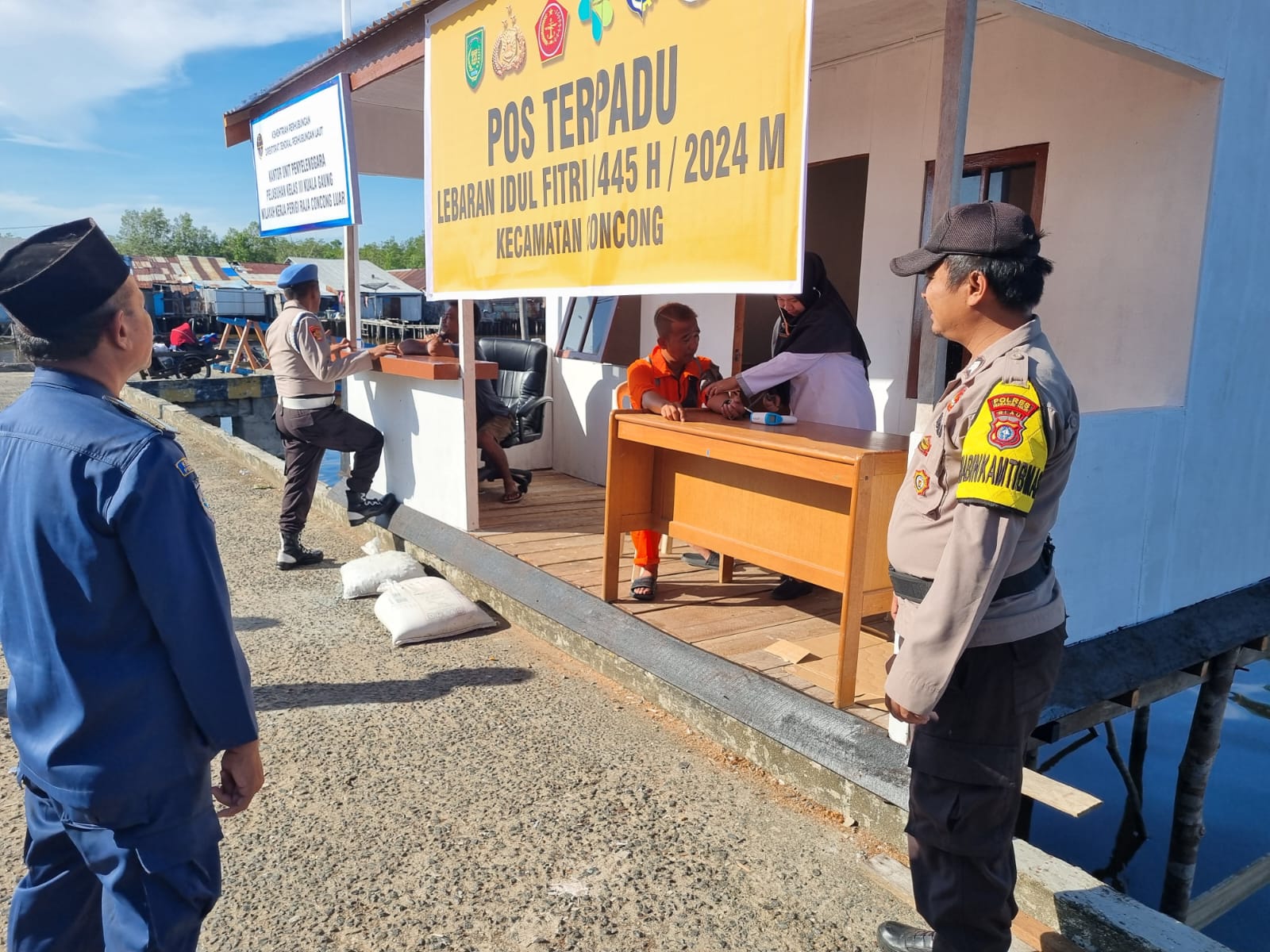 Kapolsek Concong Ipda Rozi Dhasa Prima S.IP.,M.H.melakukan Pemeriksaan Kesehatan kepada Awak Kapal yang akan mengangkut penumpang Arus Mudik Lebaran 1445H/2024 Kamis 4 April 2024