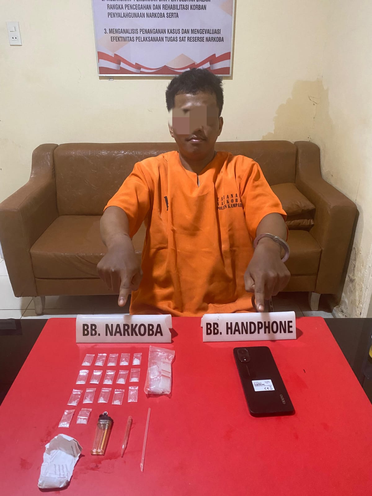 Dari penggeledahan rumahnya berhasil diamankan barang bukti 17 paket Narkoba siap edar dengan berat bruto 2.60 gram.