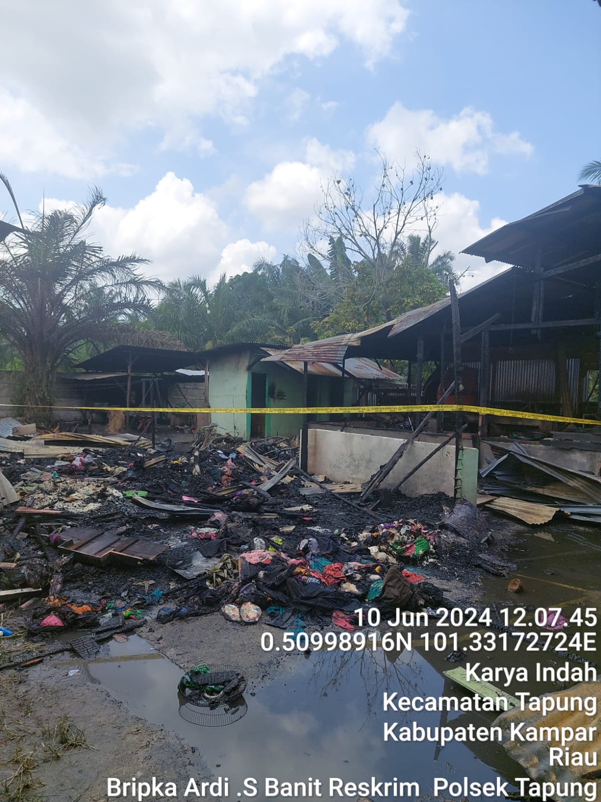 TAPUNG- Dua unit rumah yaitu rumah laundry Fira dan rumah makan Buk Yet di Jalan Garuda Sakti KM 7 Desa Karya Indah, Kecamatan Tapung, Kabupaten Kampar hangus dilalap si jago merah, Senin (10/6/2024) sekira pukul 09.30 WIB.