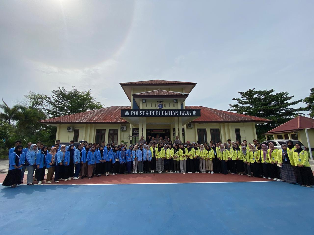 Didampingi Para Kanit Polsek Perhentian Raja, para dari Mahasiswa/i Kukerta dari Universitas Stifar, Universitas Islam Riau dan Universitas Islam Negri Sultan Syarif Qasim.