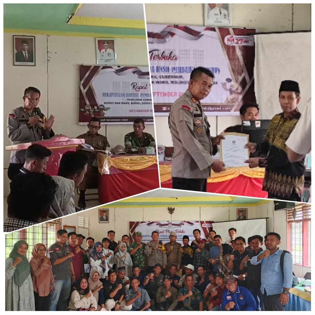 Pulau Kijang - Kapolsek Reteh AKP Herman, S.H menghadiri Rapat Pleno Terbuka Rekapitulasi Daftar Pemilih Sementara Hasil Perbaikan (DPSHP) Tingkat Kecamatan Reteh Pemilihan Gubernur dan Wakil Gubernur, Pemilihan Bupati dan Wakil Bupati Tahun 2024 yang berlangsung di Aula Kantor Camat Reteh, Jl. Penunjang Kelurahan Pulau Kijang Kecamatan Reteh, Selasa (10/09/24).