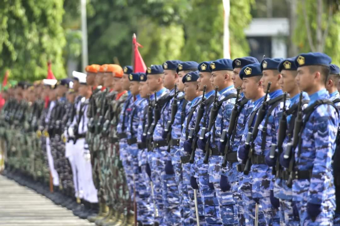 Pekanbaru – Pen Lanud Rsn. Seluruh penjuru negeri hari ini (5/10/2024) merayakan Peringatan HUT ke-79 TNI dengan khidmat dan penuh semangat. Di Provinsi Riau, upacara peringatan dipusatkan di Halaman Kantor Gubernur Riau, yang diikuti oleh tiga matra TNI, Polri, PNS TNI, Polisi Pamong Praja, Perhubungan, serta Pramuka Saka Wira Kartika. Upacara ini diadakan serentak dengan upacara nasional yang digelar di Monumen Nasional, Jakarta.