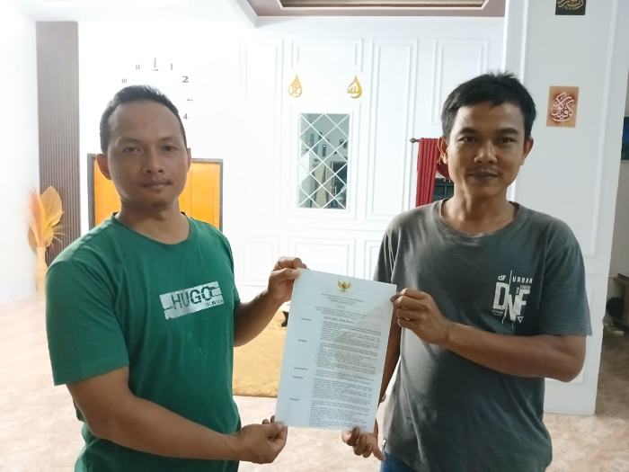 Penyerahan SK tersebut diberikan langsung oleh Sekdes Desa Lubuk Bernai ke Mahdi Tirtana.