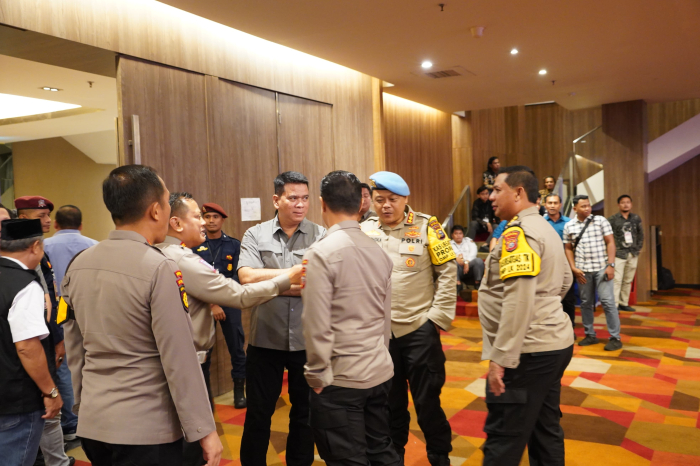 Pekanbaru, Kampanye Pemilihan Umum Kepala Daerah (Pilkada) Tahun 2024 Kabupaten Kuansing yang di Taja di Hotel The Primier Pekanbaru, Polda Riau Terjunkan Sebanyak 280 Personel yang tergabung dalam Satuan Tugas dan Sub Satuan Tugas Operasi Mantap Praja (Satgas dan Sub Satgas OMP) Lancang Kuning 2024.