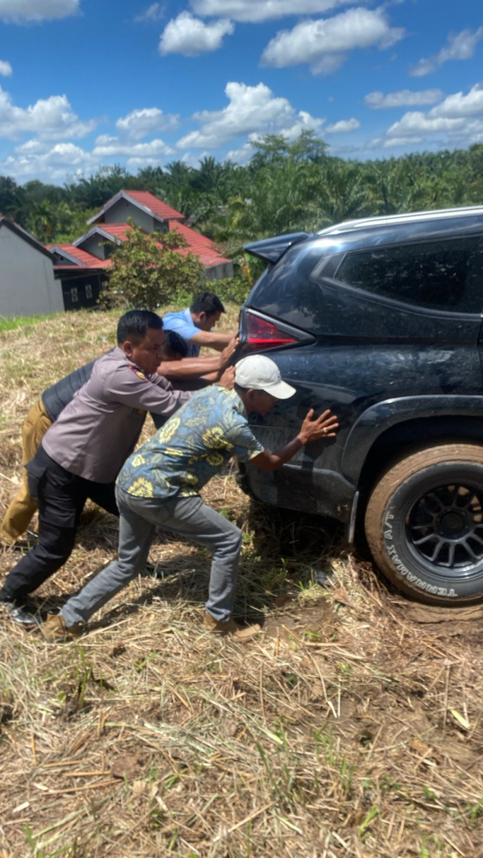 Kasat Binmas Polres Kampar Turun Tangan Bantu Warga yang Mobilnya Terjebak Lumpur