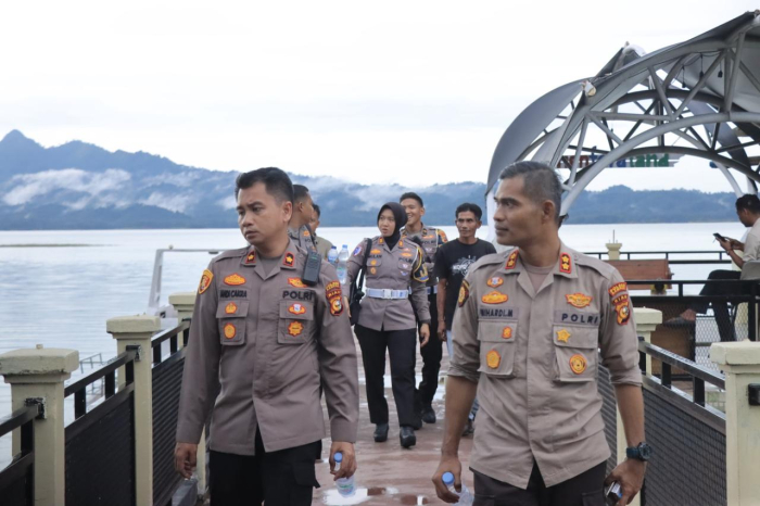 XIII KOTO KAMPAR, – Kapolres Kampar, AKBP Mihardi M, bersama Wakapolres Kampar Kompol Andi Cakra Putra dan Pejabat Utama Polres Kampar (PJU) melakukan patroli ke Henferd Land, objek wisata dengan nuansa Timur Tengah di tepi PLTA Koto Panjang, Kecamatan XIII Koto Kampar, pada Minggu (4/5/2025).