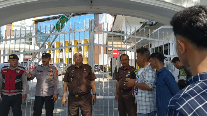 Belasan Massa yang tergabung dalam Koalisi Masyarakat Pemerhati Agraria ( KMPA ) Jambi melakukan aksi di Kejaksaan Tinggi Provinsi Jambi pada selasa 6 mei 2025,
