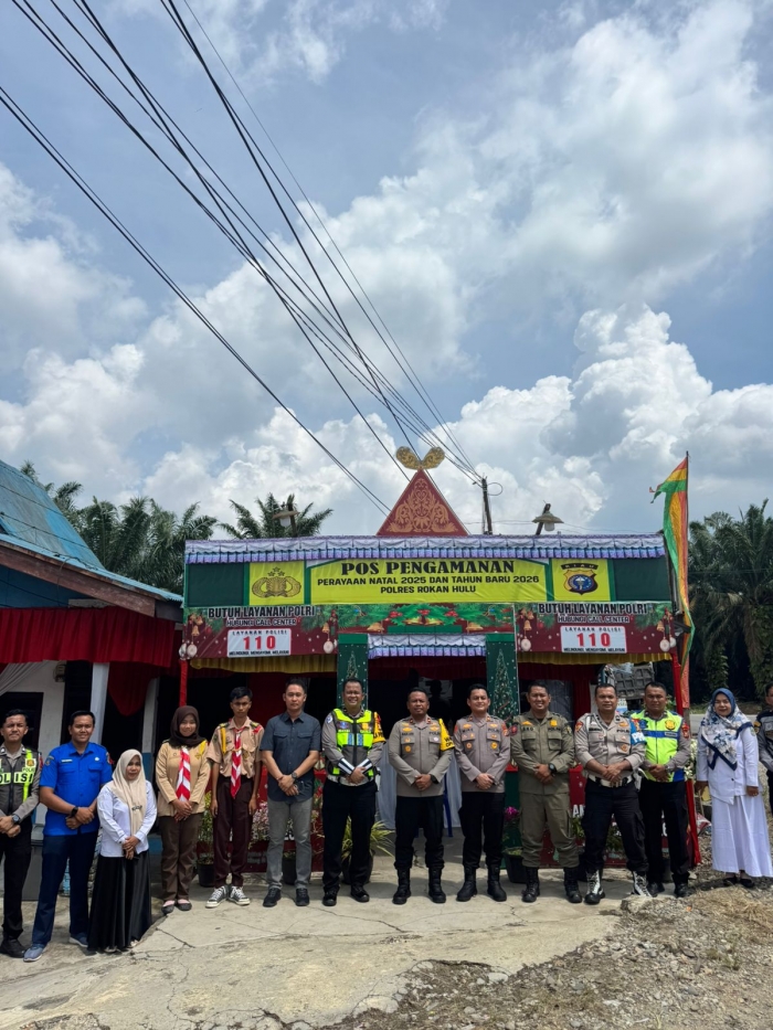 Rokan Hulu – Wakapolres Rokan Hulu Kompol I Made Juni Artawan, S.I.K., M.H., melaksanakan kunjungan sekaligus pengecekan Pos Pengamanan (Pos Pam) Perayaan Natal 2025 dan Tahun Baru 2026 dalam rangka Operasi Lilin Lancang Kuning 2025 Polres Rokan Hulu, Rabu (24/12/2025) siang.